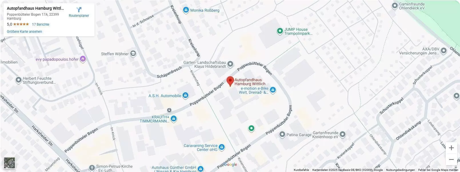 Unser Autopfandhaus in Hamburg erstellt Ihnen gerne ein unverbindliches Angebot. Rufen Sie einen unser Mitarbeiter vor Ort an und vereinbaren Sie einen Termin. Sie erreichen uns auch über E-Mail oder mobil über WhatsApp. Wir freuen uns auf Ihre Kontaktaufnahme!