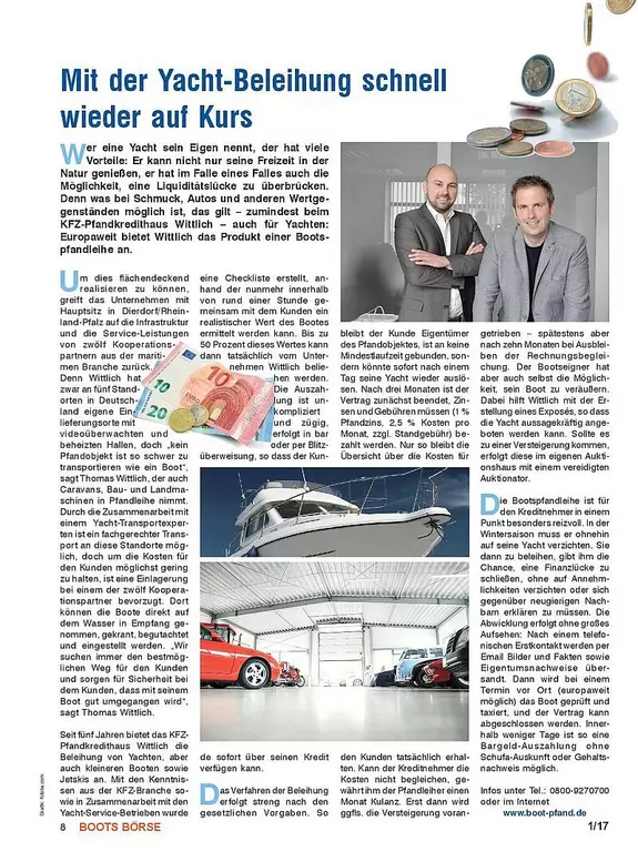 In Ihrer Ausgabe vom Januar 2017, passend zur Boot Düsseldorf, berichtete die Zeitschrift Boots-Börse über unseren Service.